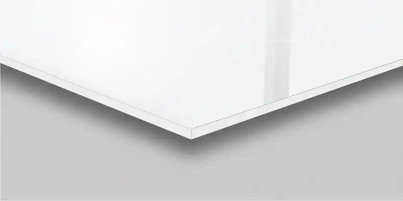 Die glänzende, weiße Oberfläche verleiht deiner Duschrückwand, Toilettenrückwand oder Badrückwand eine klare, ruhige und angenehm moderne Ausstrahlung. Das leichte, glänzende Schimmern sorgt für ein harmonisches und elegantes Gesamtbild.