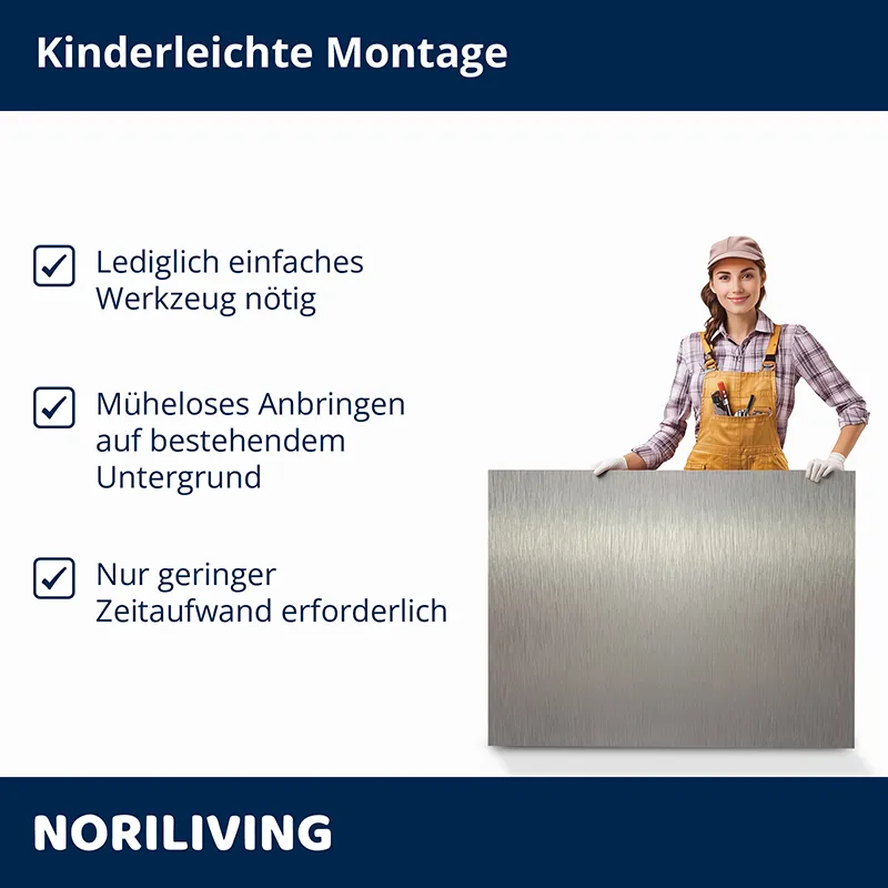 - Die Platten lassen sich auf nahezu jedem Untergrund befestigen. Wichtig ist, dass die Fläche eben und glatt ist. Bei Fliesen müssen vor der Montage Seifenreste und Verschmutzungen gründlich entfernt werden. Anschließend die Fliesen fettfrei reinigen und vollständig trocknen lassen.